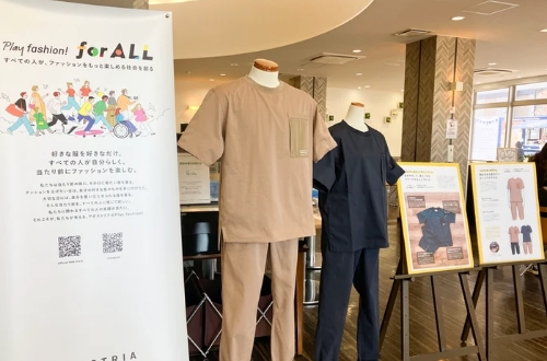 協働によりお互いの強みと、解決したい課題が見えてくるなか、“障がいのある方のための服”にも注目。2025年12月には、インクルーシブファッションイベント「みんなでファッションを考え楽しむ日」が実現しました。バリアフリーのスイコウスクエアを会場に、介護福祉士がご利用者のために考えたコーディネートを披露したり、施設のご利用者や地域の方がたがショッピングを楽しんだり、障がいの有無に関わらず、だれもがファッションを楽しみました。