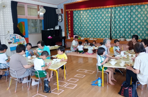 地域と共生する活動としては、美都地区の「保育所レストラン」もユニークです。ここでは地域の方が誰でも園内で昼食を摂ることができます。メニューは園児たちの給食とまったく同じ。予約制ではありますが、決められた園開放日ではなく日常の試みであることが特色です。「これまでもイベントなどで地域の方とのつながりはありましたが、より顔が見える関係になったと思います」と山根理事長は話します。
