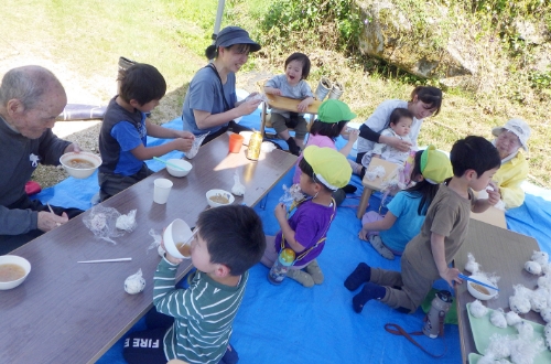 園児たちの訪問が地域のセーフティネットになっている側面もあります。「安否確認というと大げさですが」と山根理事長は謙遜しますが、里山保育の開始から10年を経て、保育士や園児たちは地域のほぼ全員と顔見知りです。